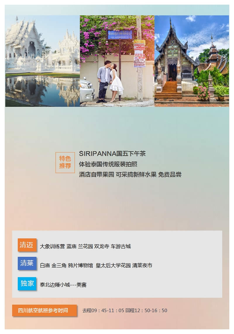 早餐后前往清邁機場乘坐飛機返回成都,結(jié)束愉快的旅程!